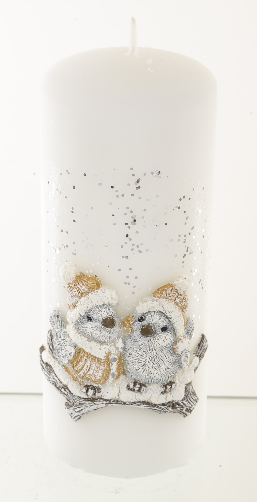 Pl Biały Świeca Zimowy Ptaszek Walec Średni Fi7