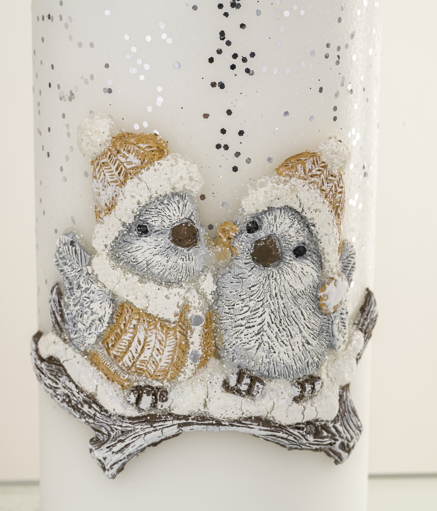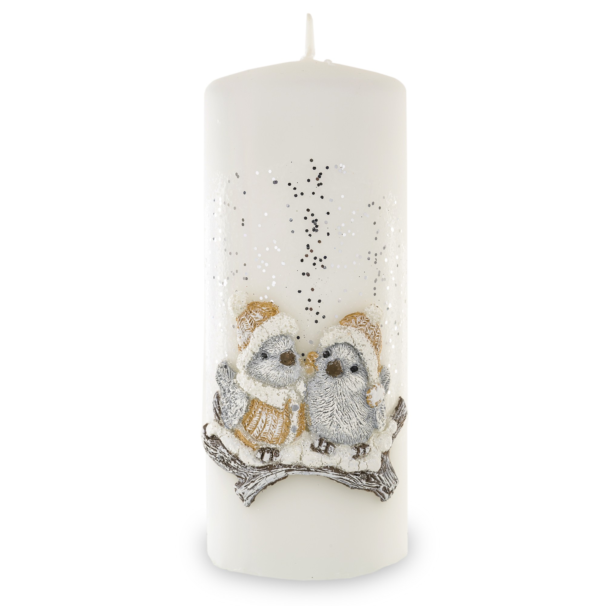 Pl Kremowy Świeca Zimowy Ptaszek Walec Średni Fi8