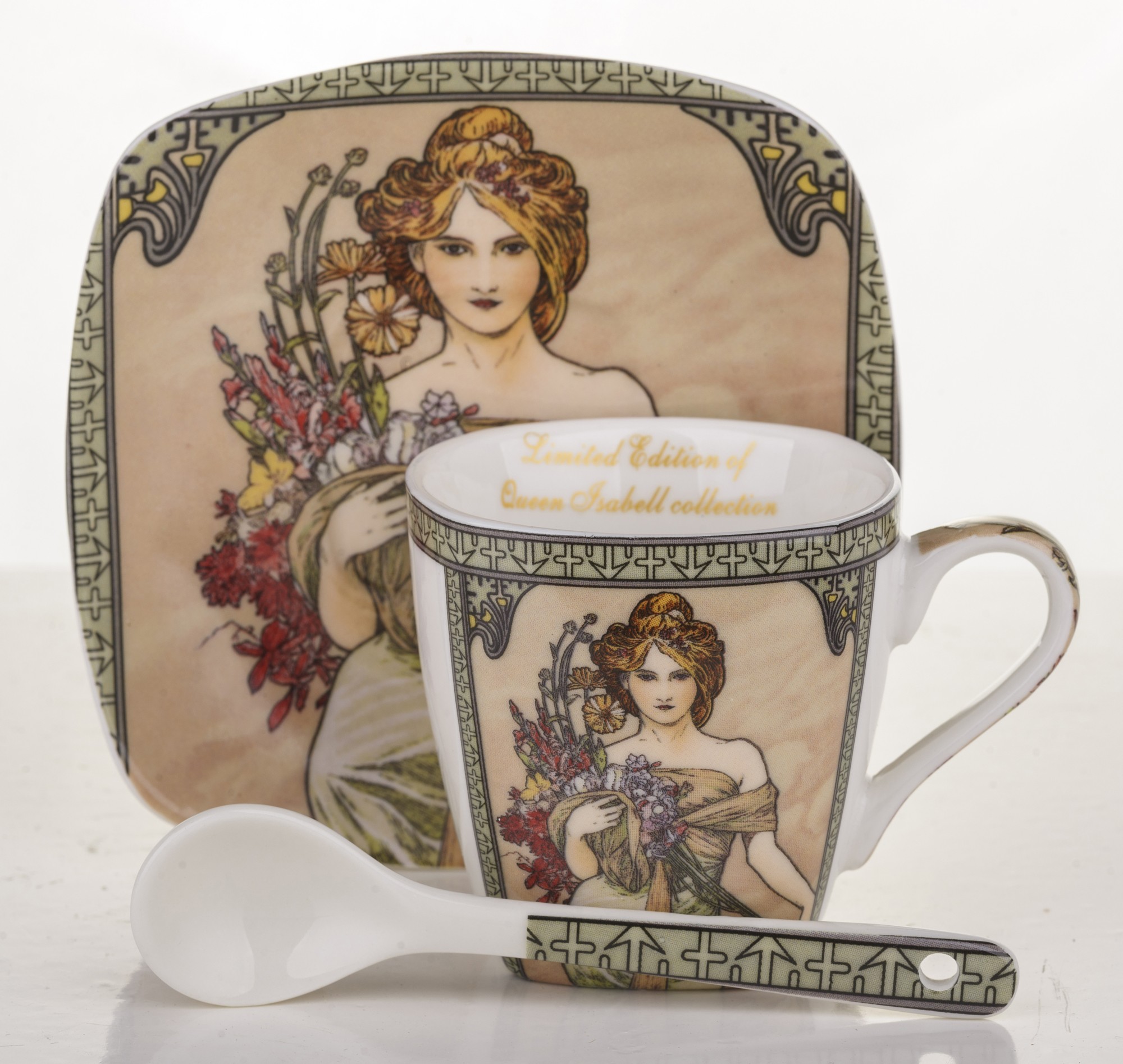 • Памер: filiżanka 5,5x7,5x6 spodek 10x10x1,5 łyż 12,5x2,5