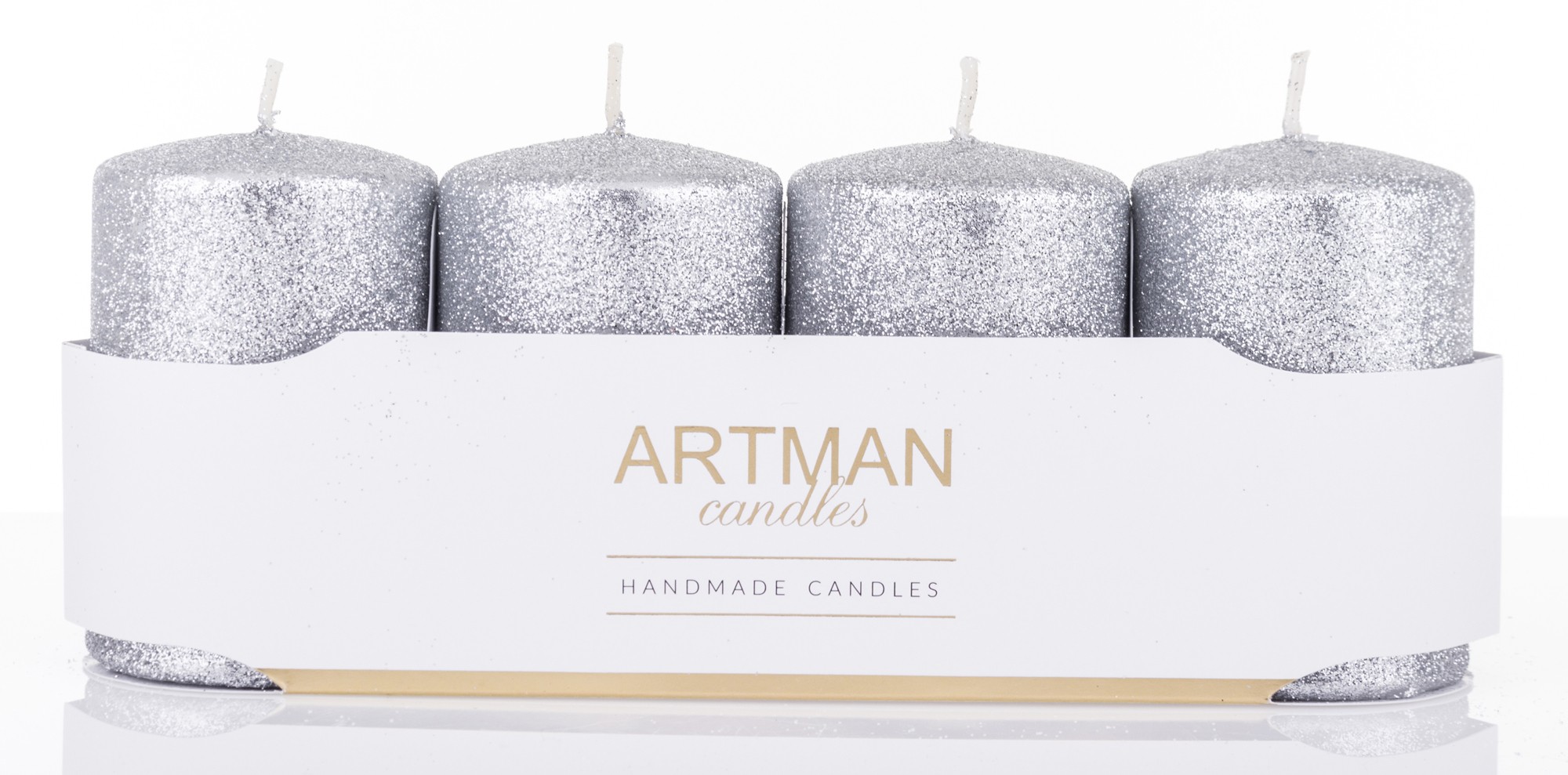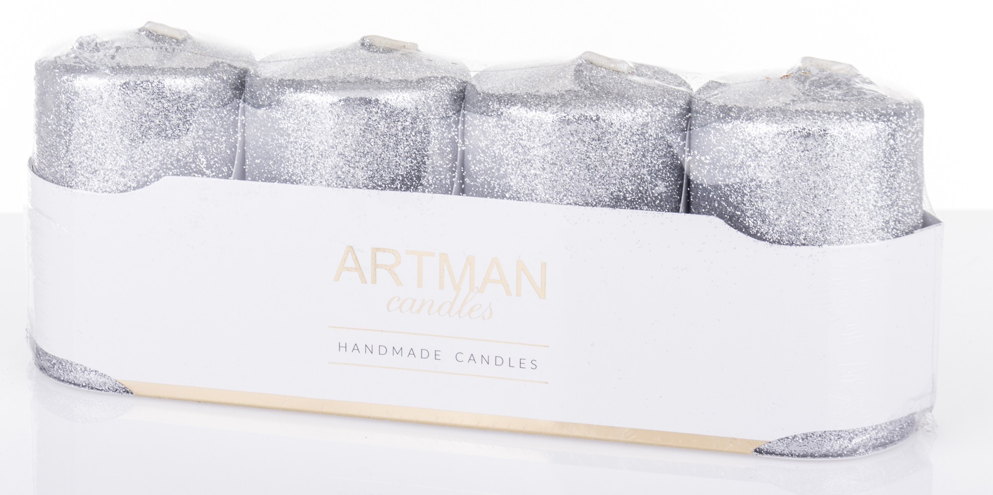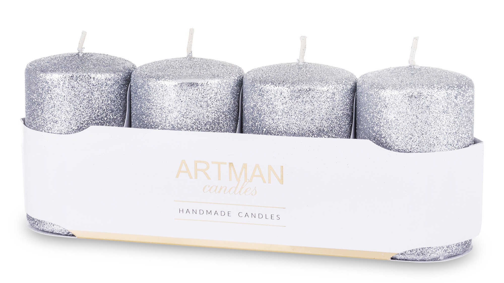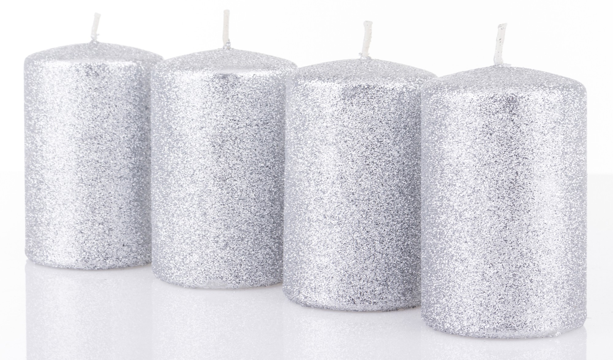 Pl Świeca 4-Pack Brokat Srebrny