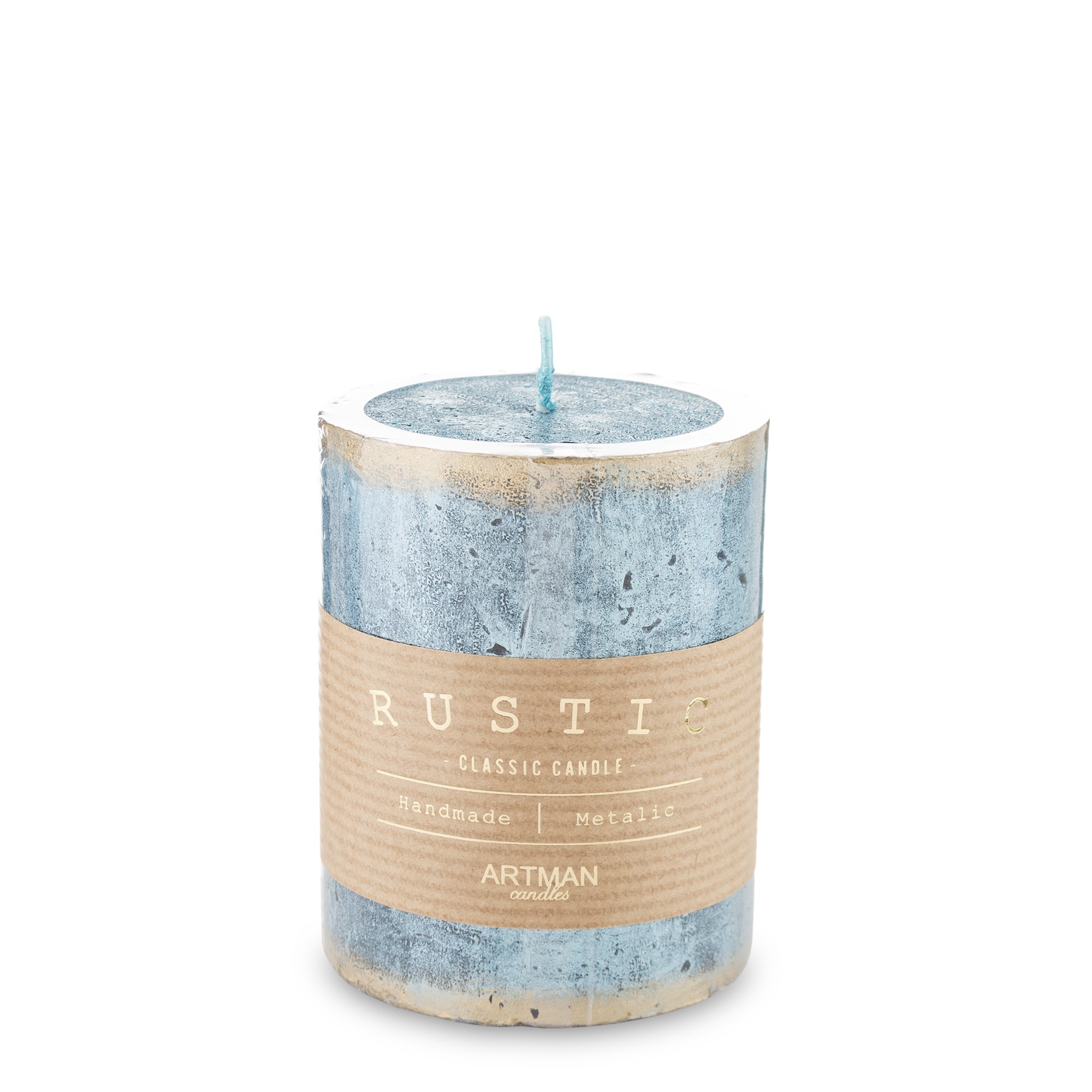 Pl Biały Świeca Rustic Metalic Walec Mały Fi7