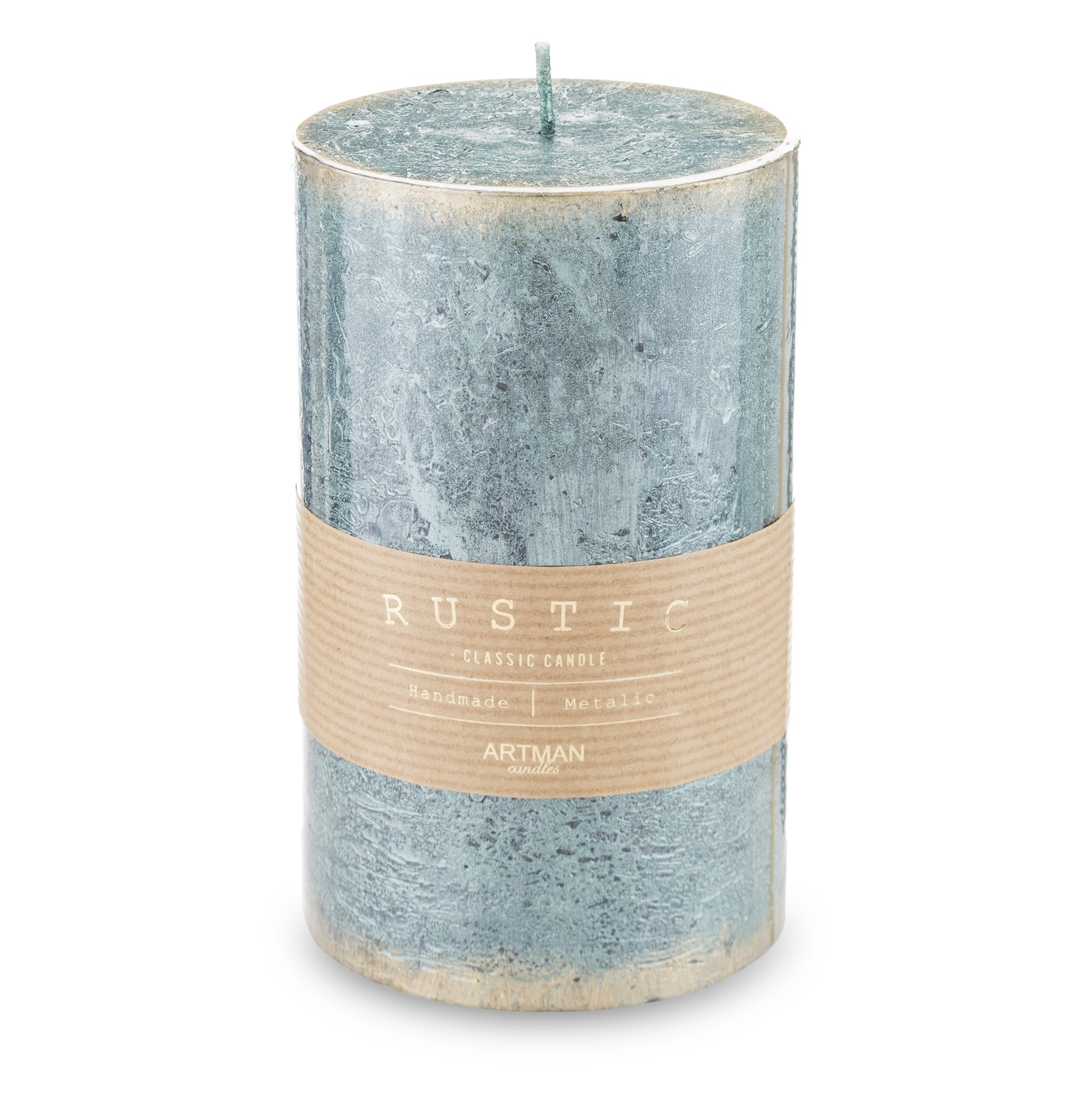 Pl Biały Świeca Rustic Metalic Walec Średni Fi7