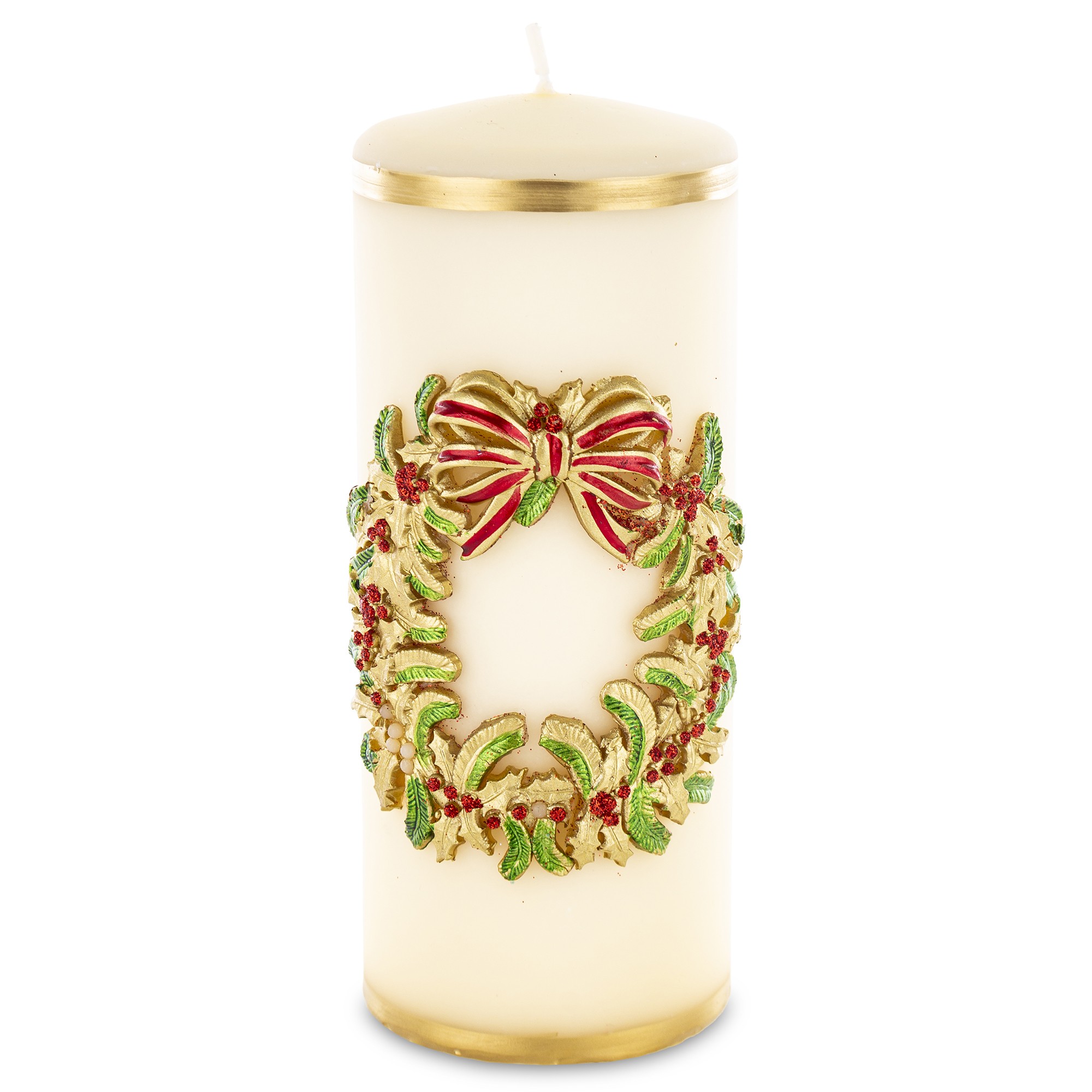 Pl Świeca Wianek Walec Duży Kremowy Fi7