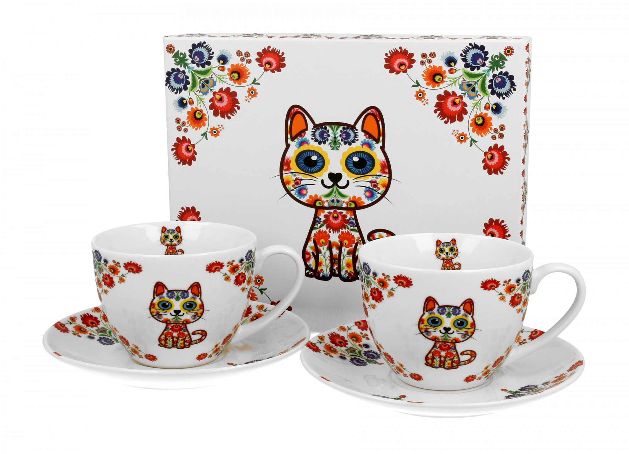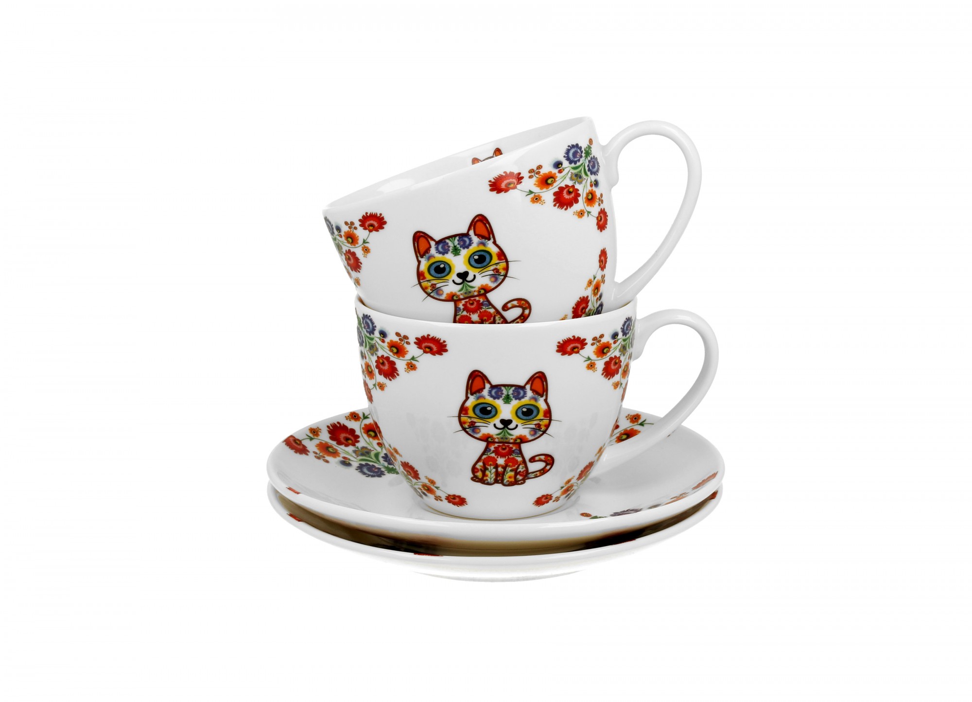 Pl Filiżanki Ze Spodkami Kot Etno 2 Szt.