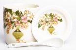 • Памер: kubek 9x12,5x8,5 podstawka 1,5x9,5x9,5 łyż. 12,5