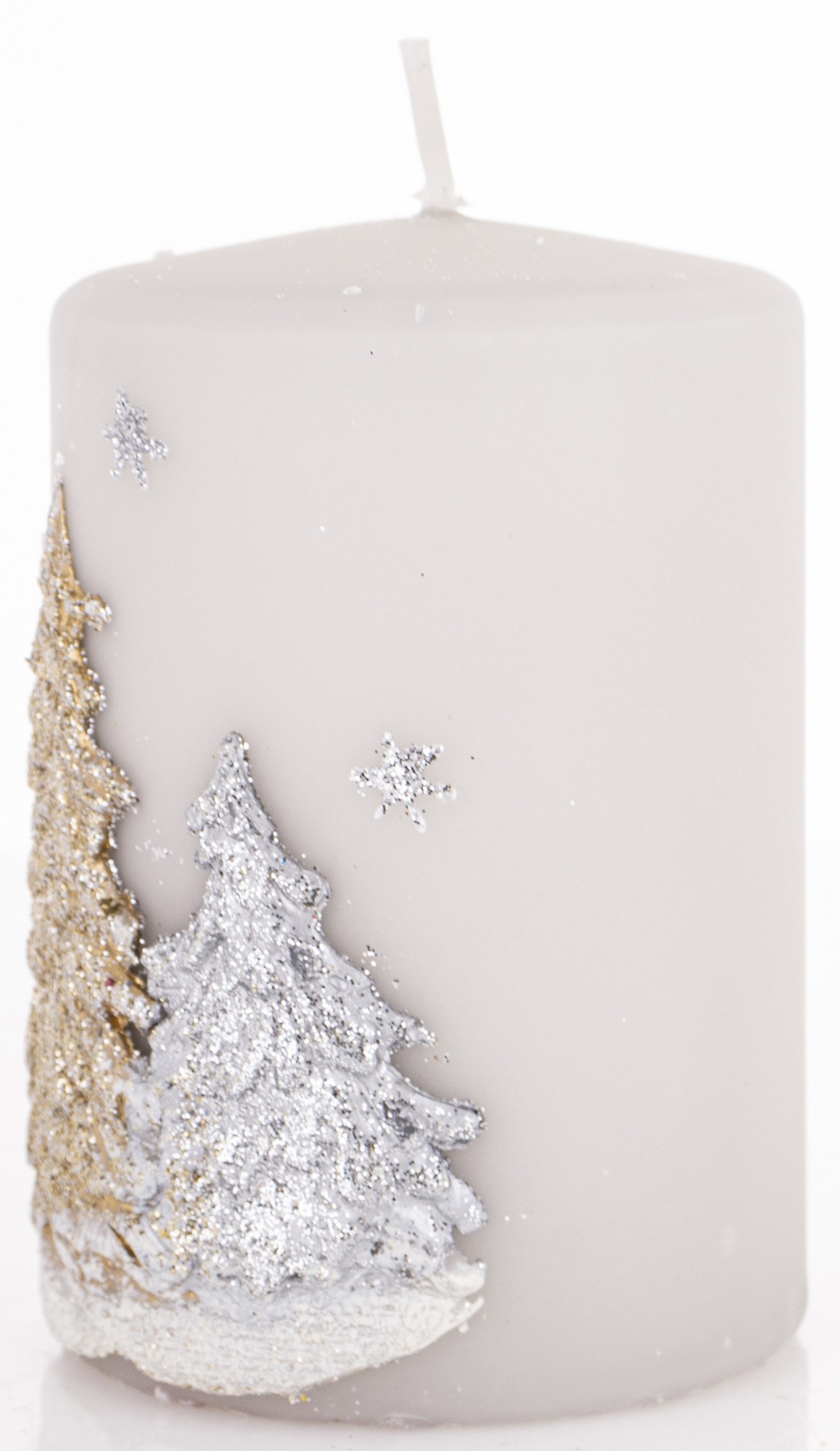 Pl Świeca Zimowe Drzewka Walec Mały Szary Fi7