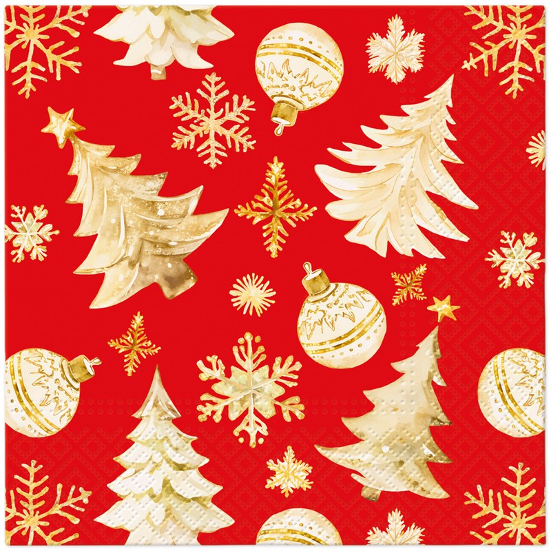 Pl Serwetki Golden Christmas Trees Red