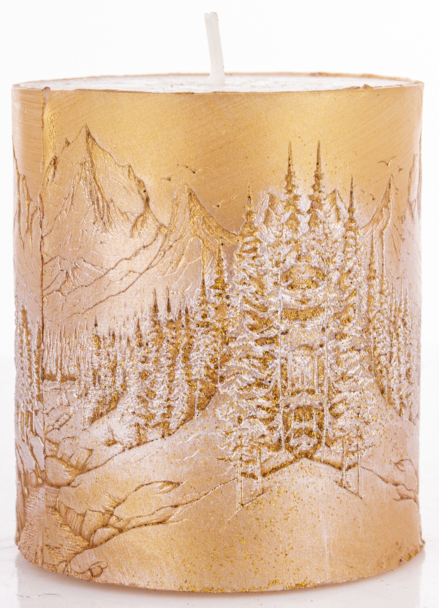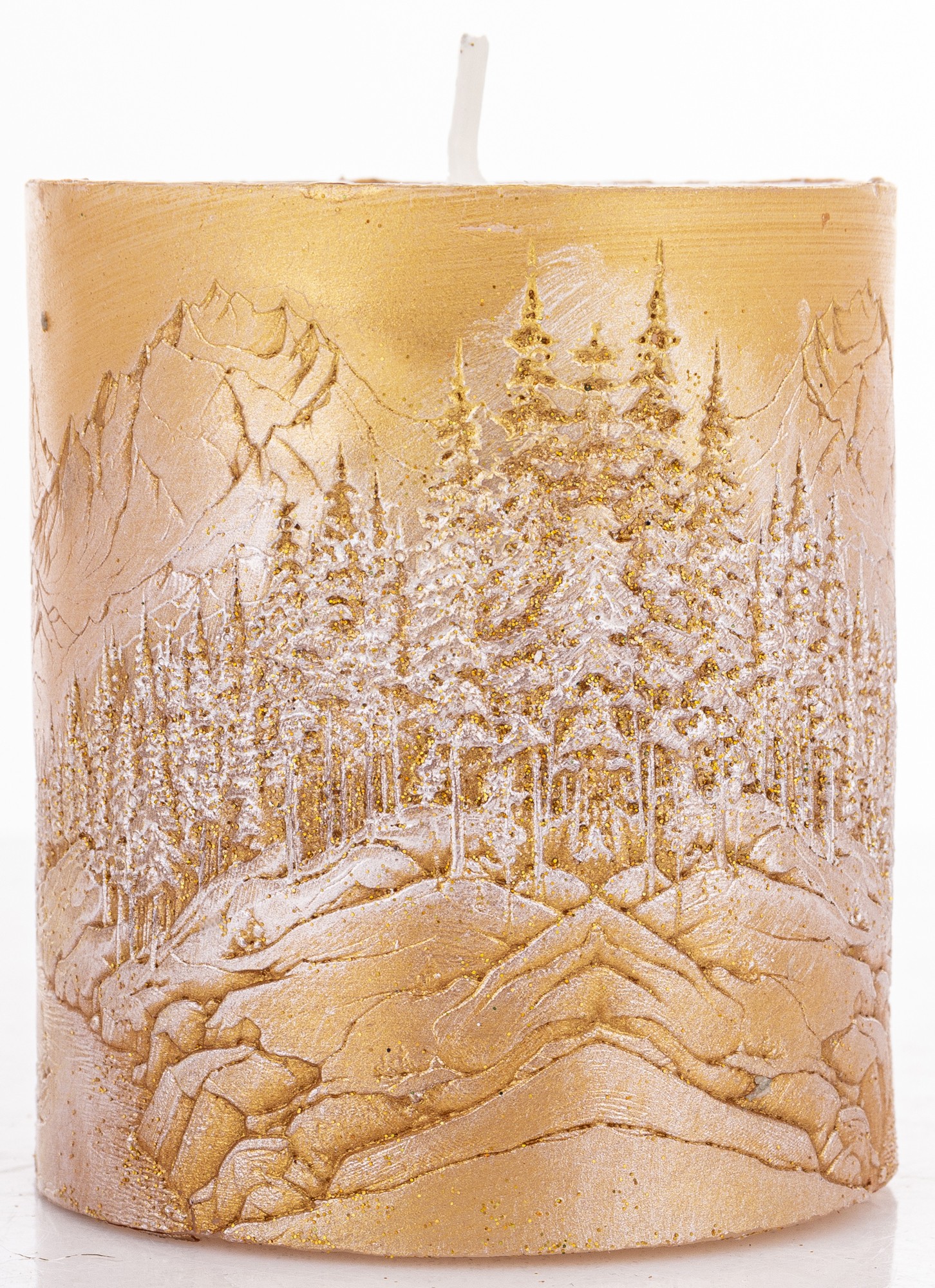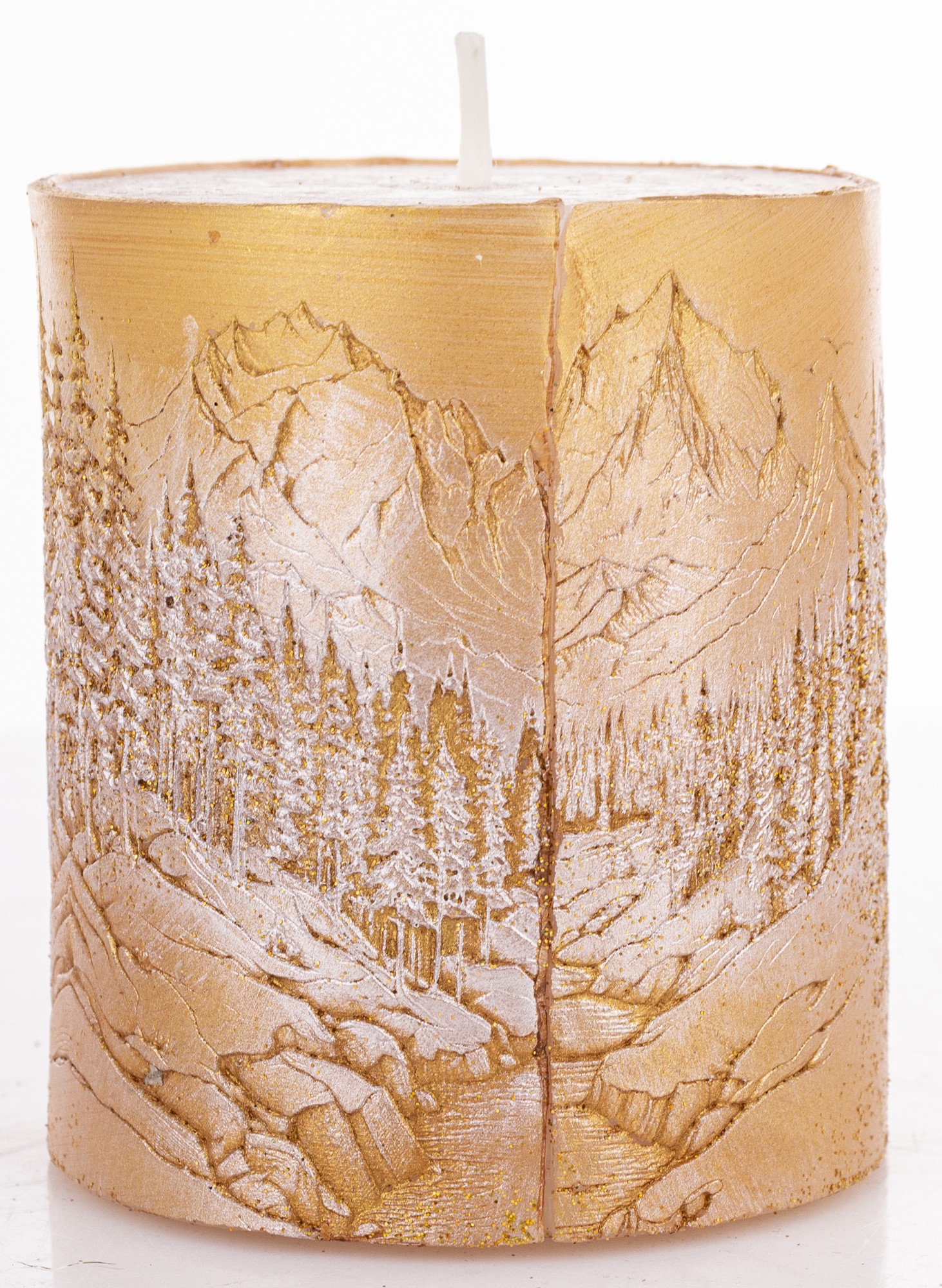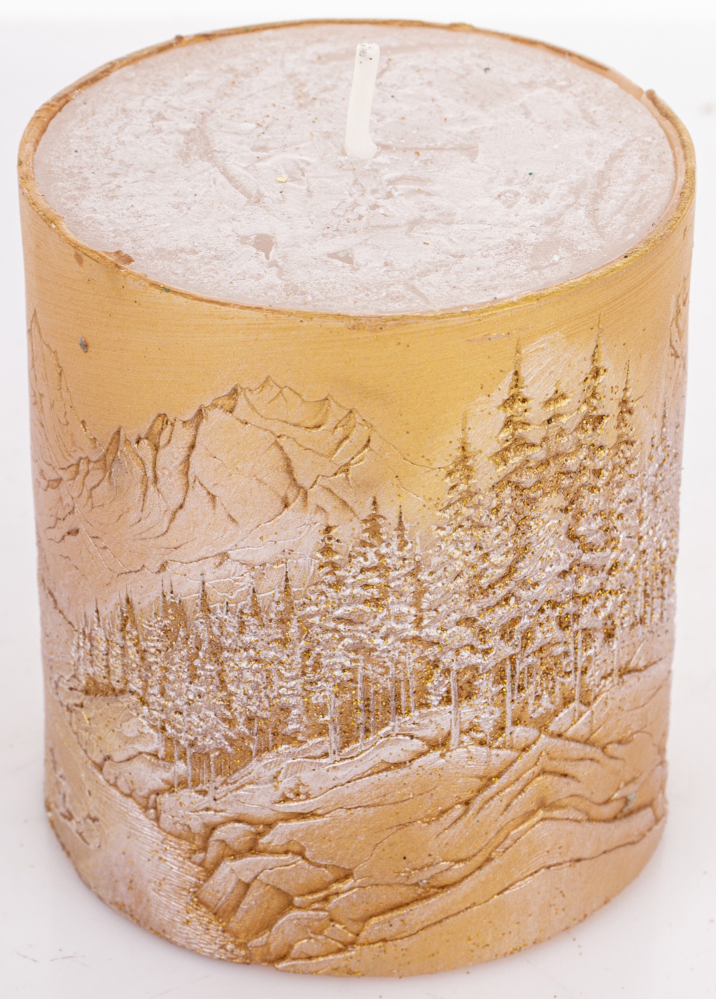 Pl Świeca Walec Mały Pejzaż Złoto Perła