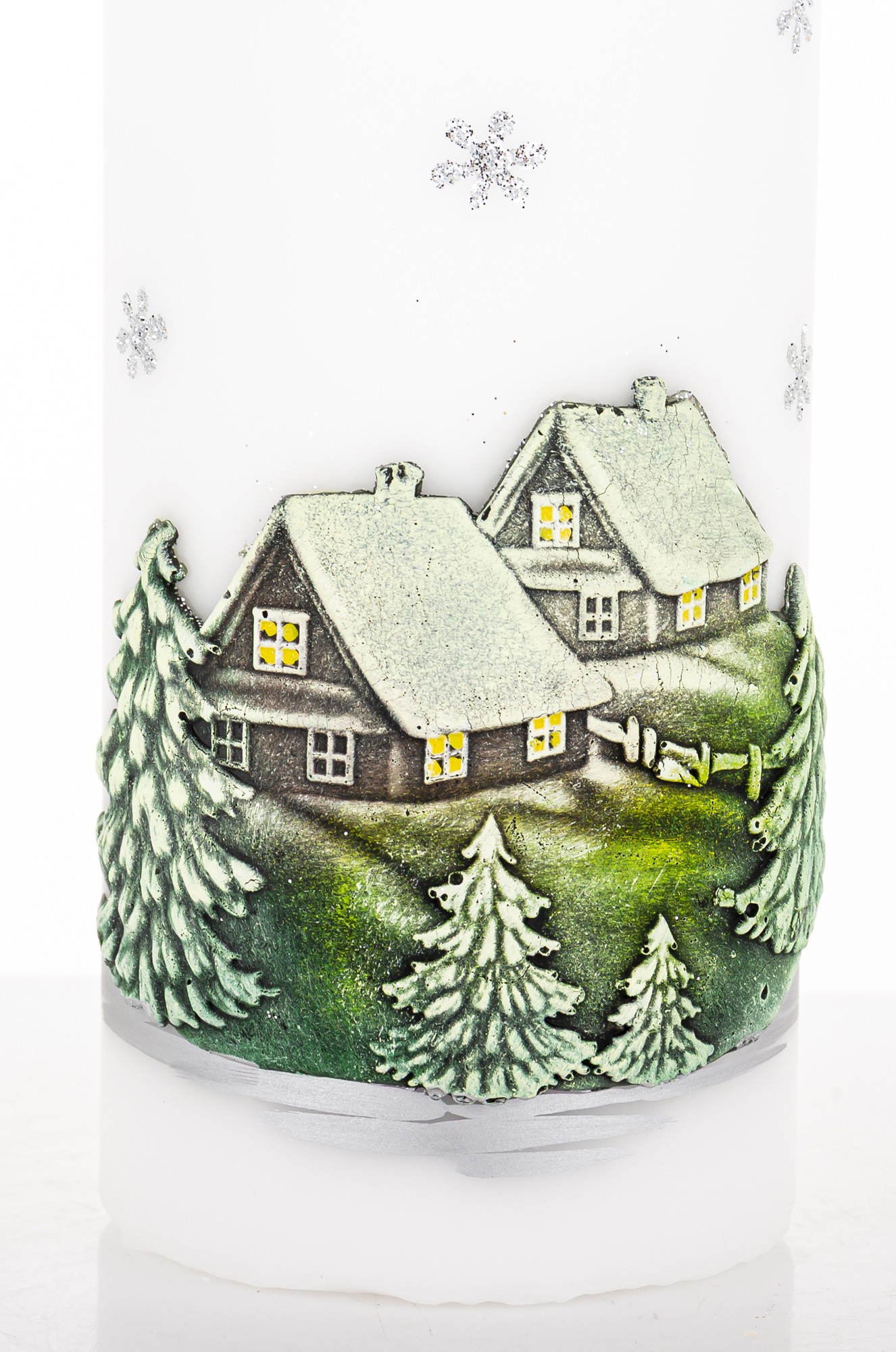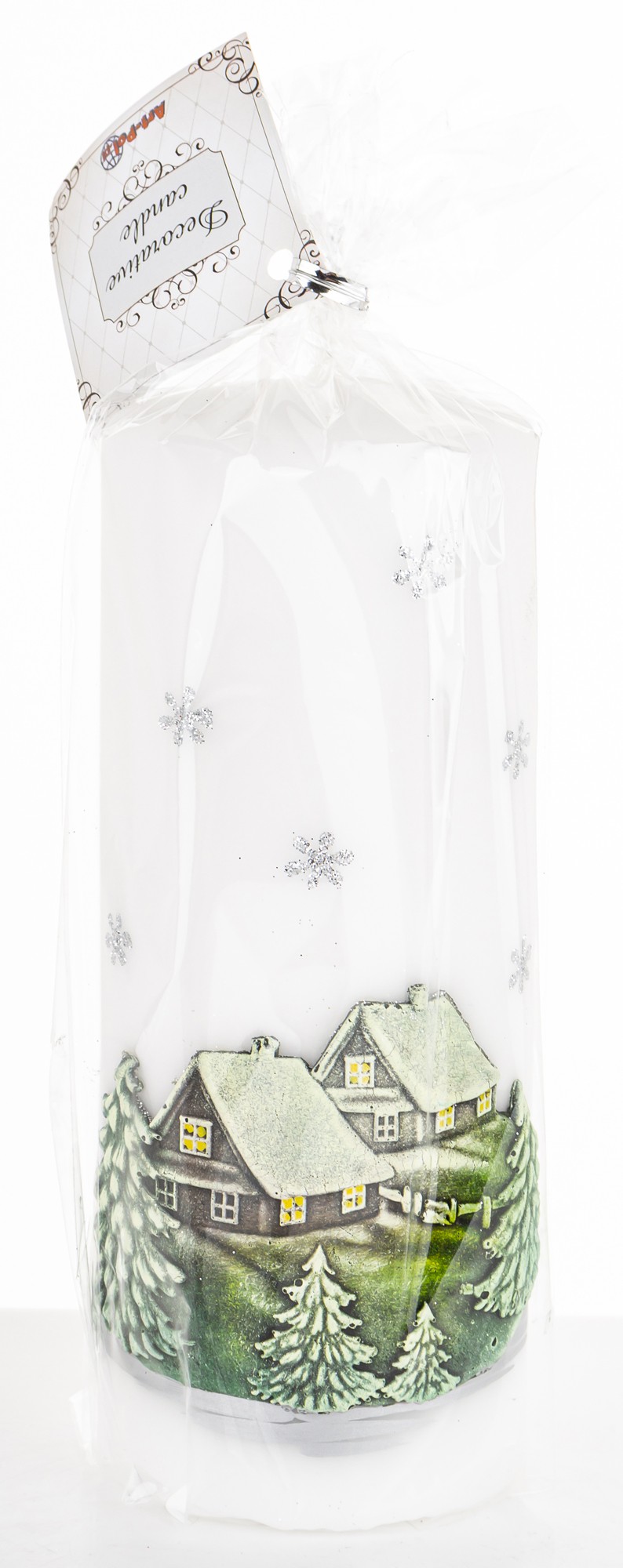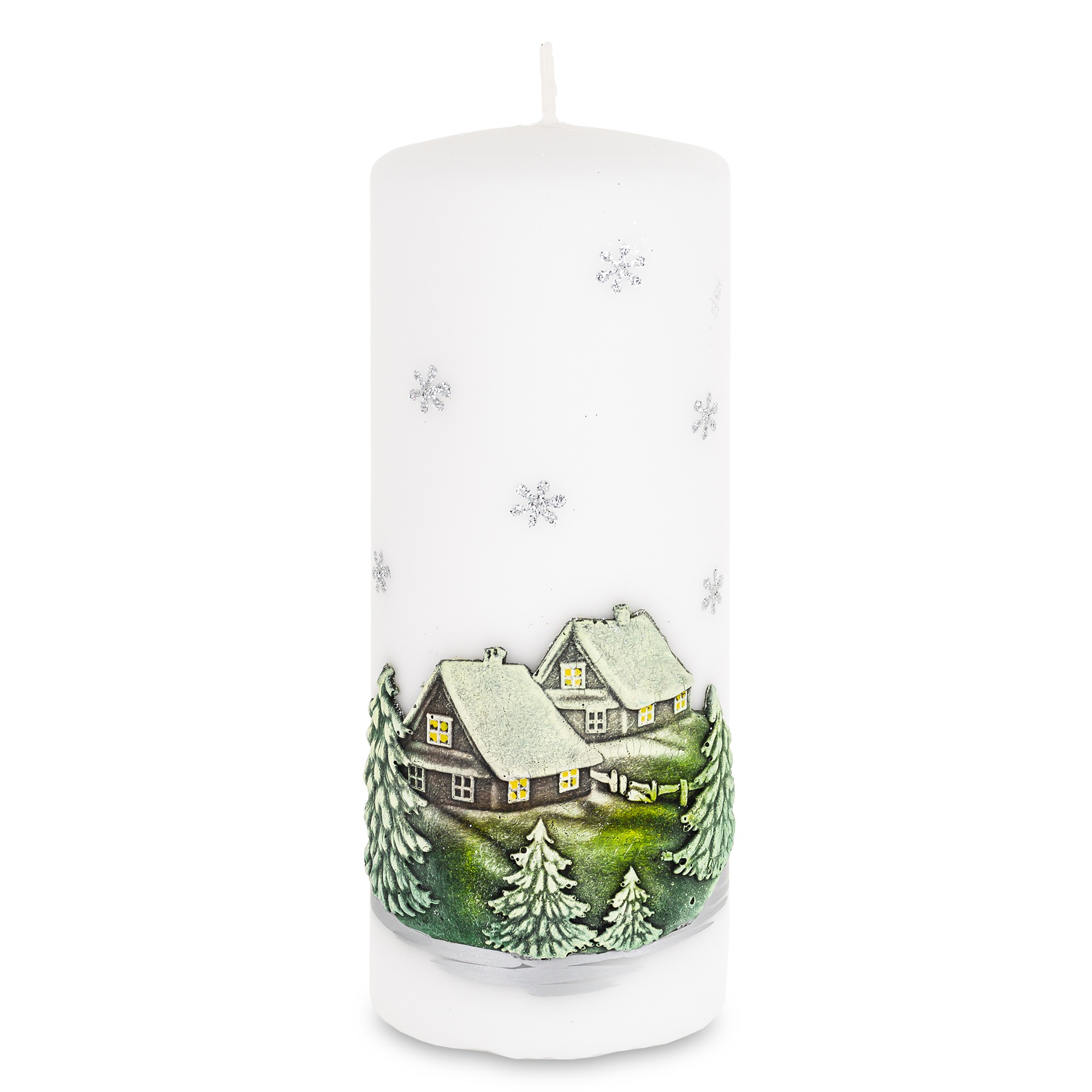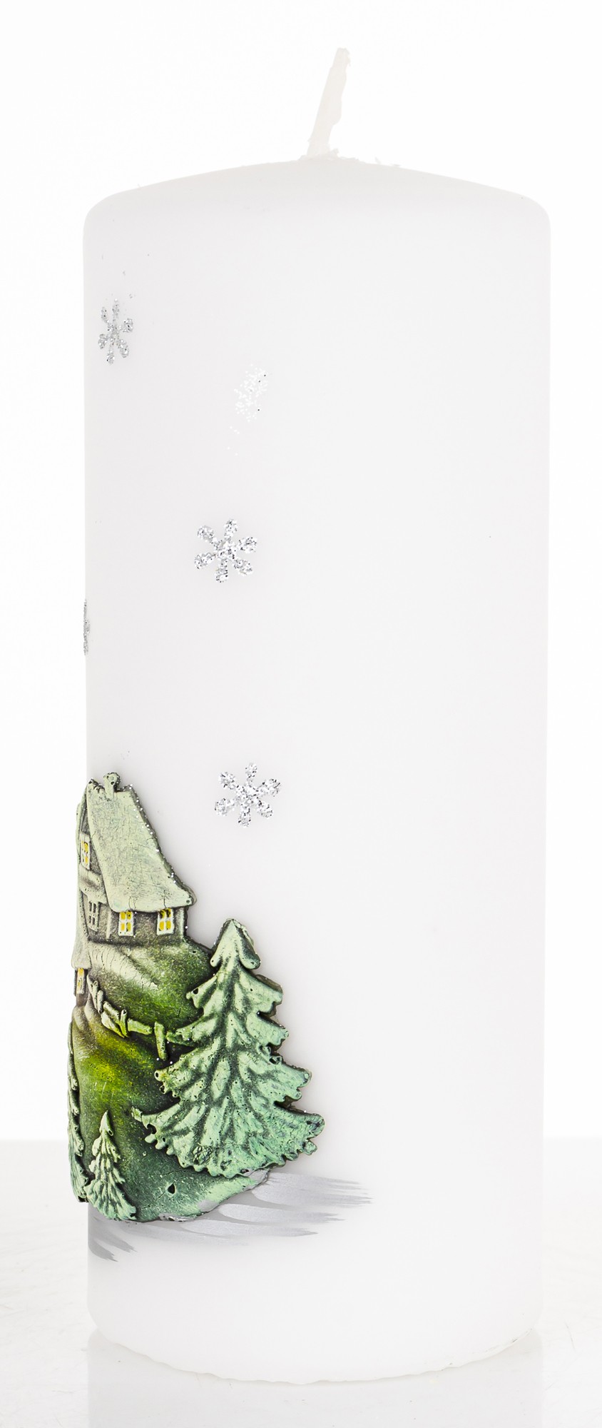 Pl Świeca Zimowy Domek Walec Duży Biały Fi7