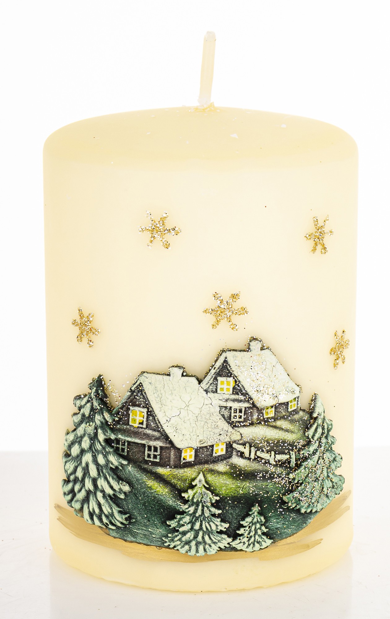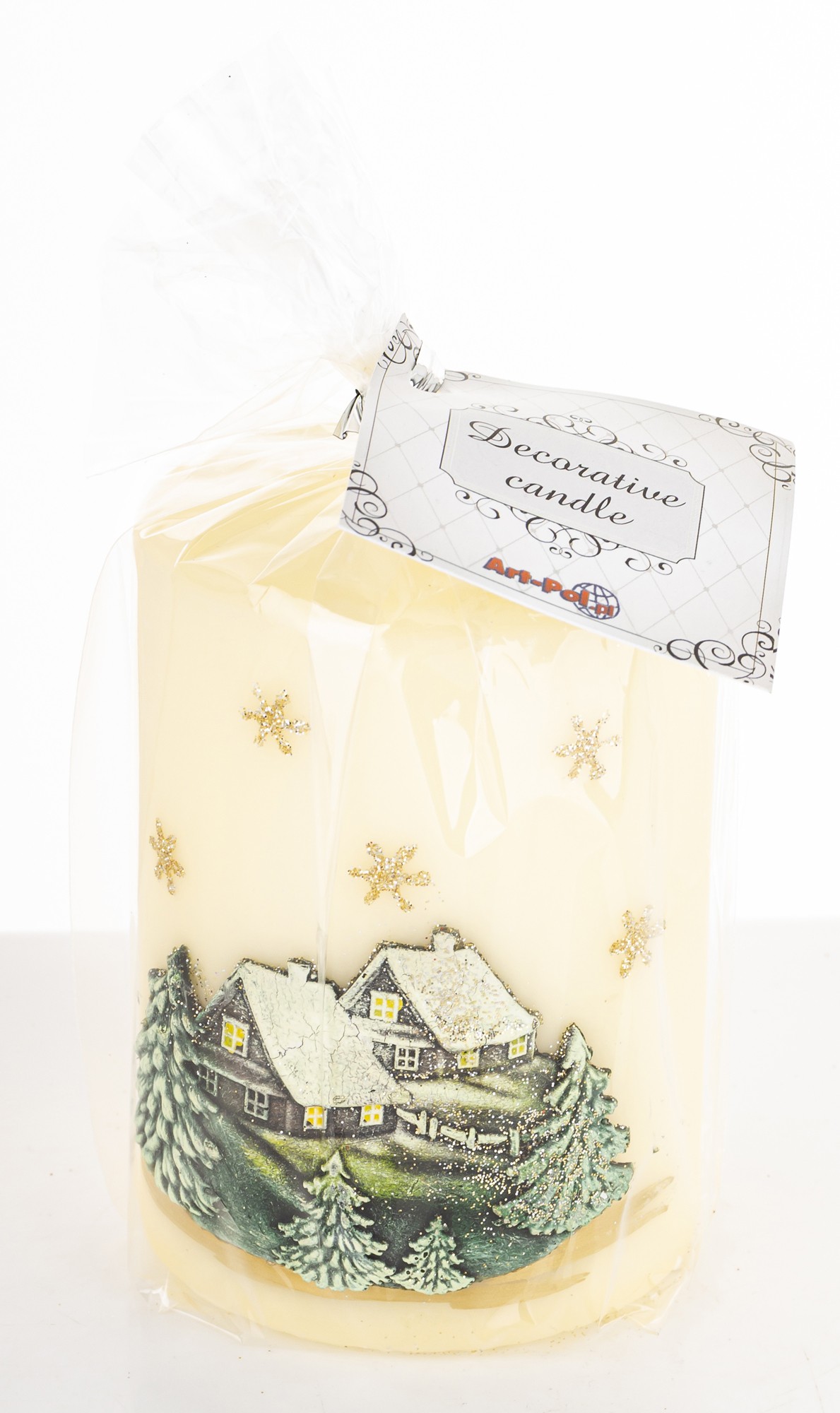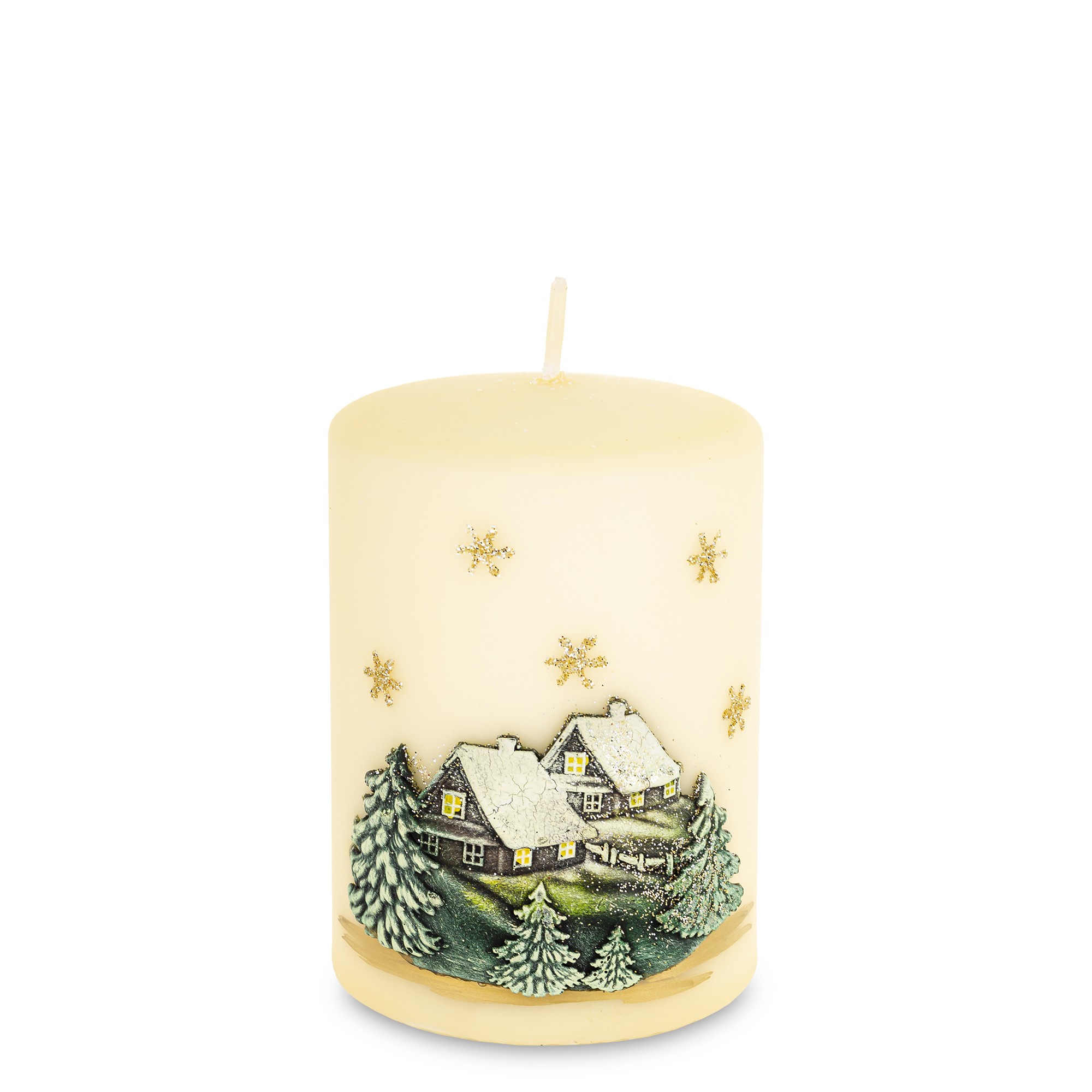 Pl Świeca Zimowy Domek Walec Średni Kremowy Fi7