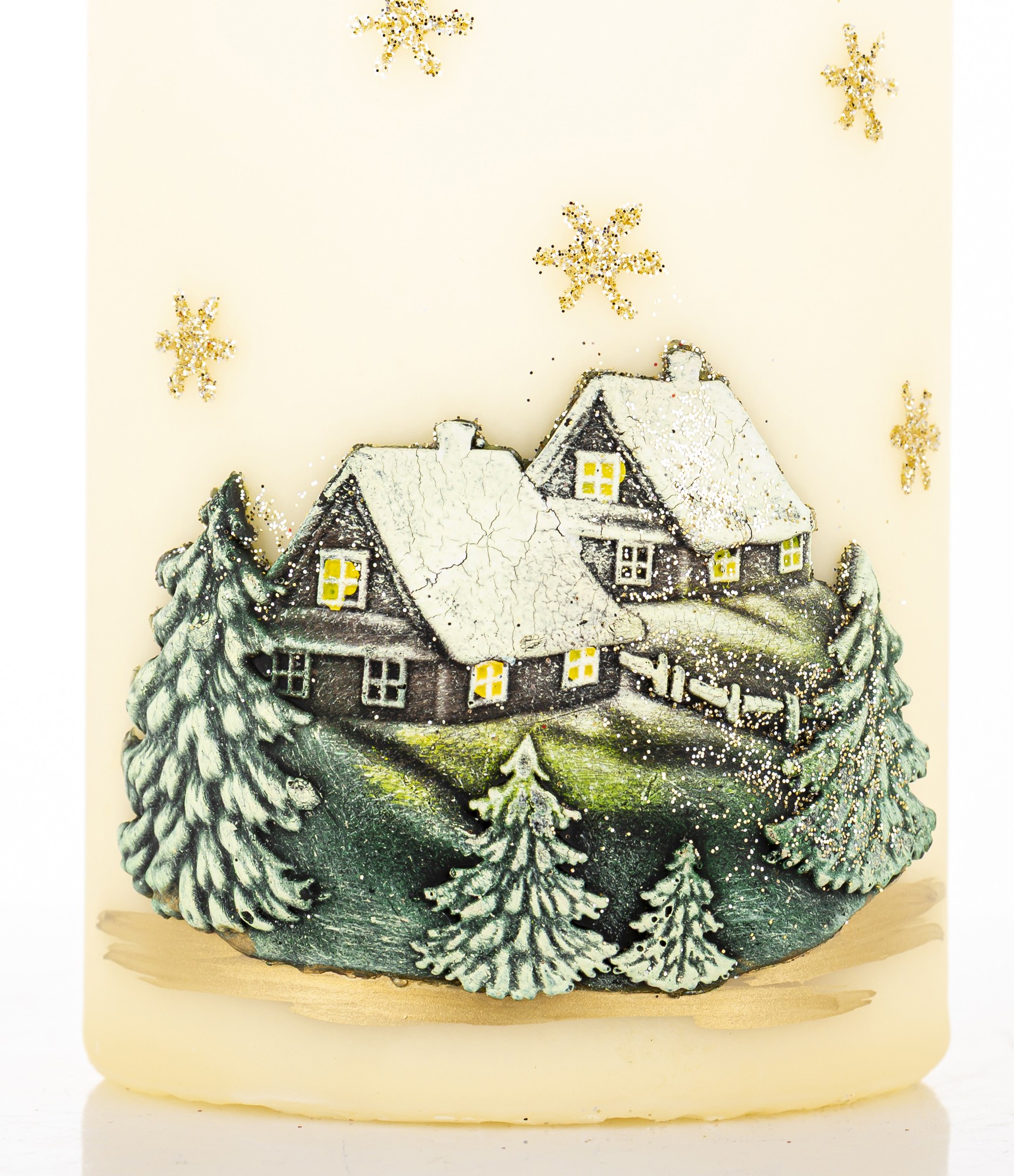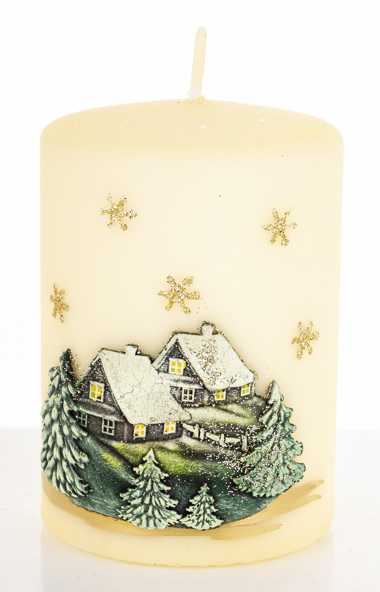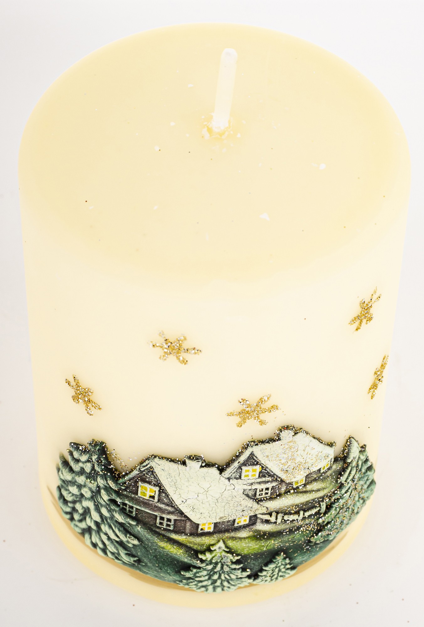 Pl Świeca Zimowy Domek Walec Średni Kremowy Fi7