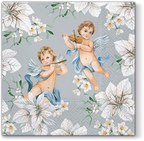 Pl сурвэткі анёлы ў кветках срэбра