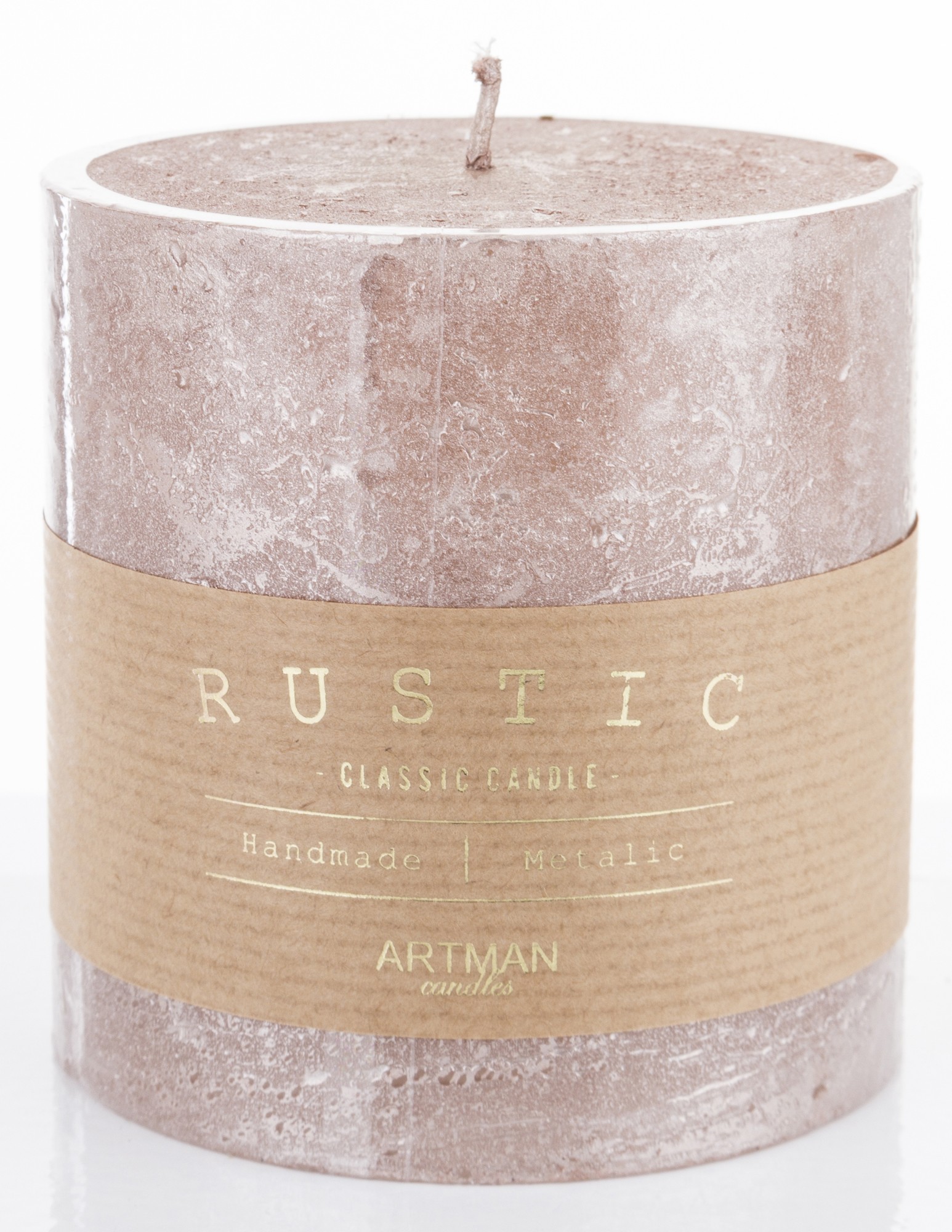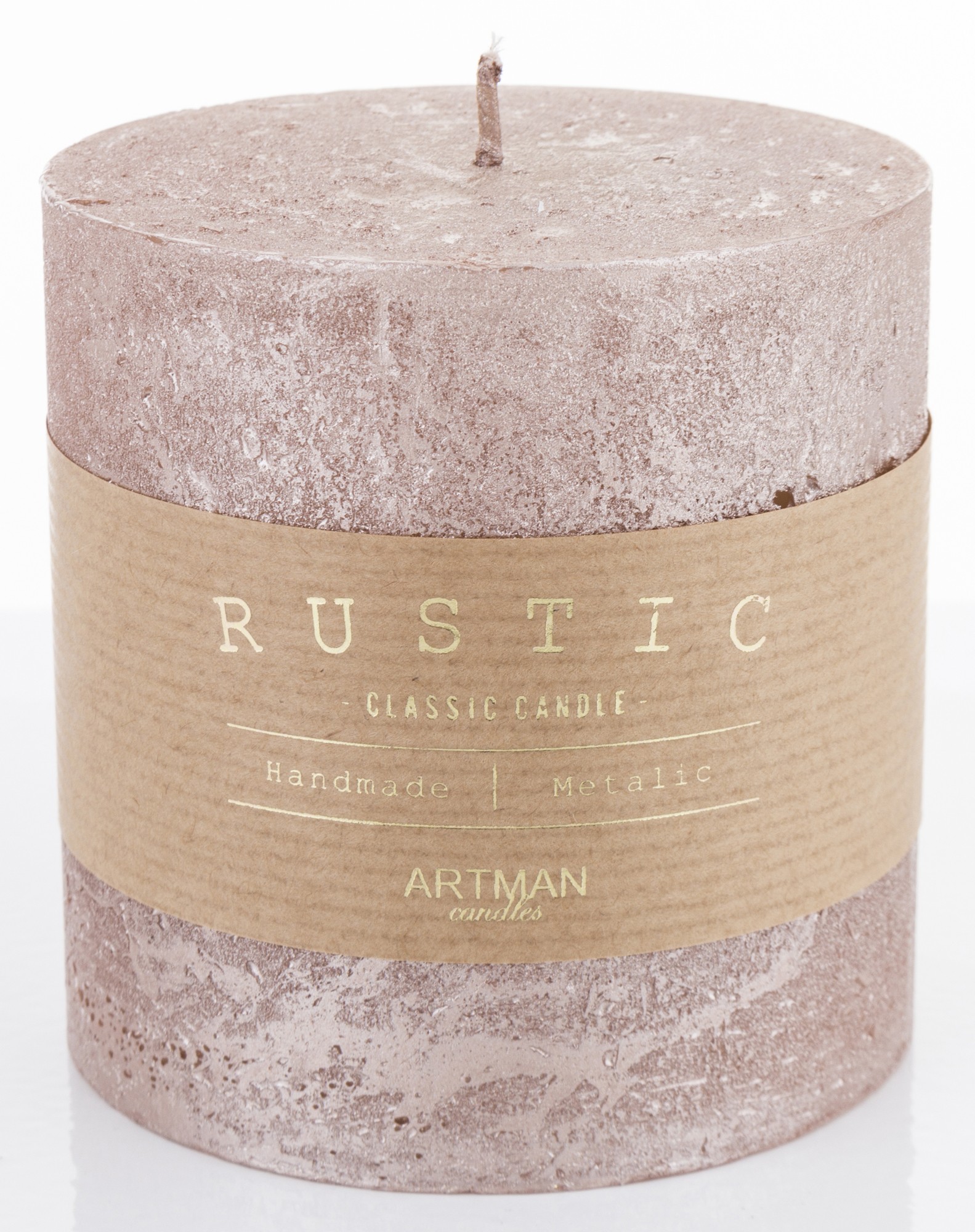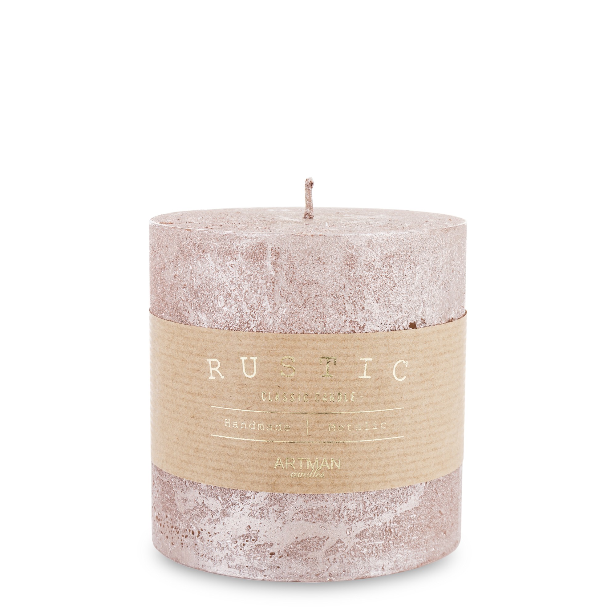 Цыліндрычная свечка з ружовага золата ў рустыкальным металічным стылі, маленькая, fi9